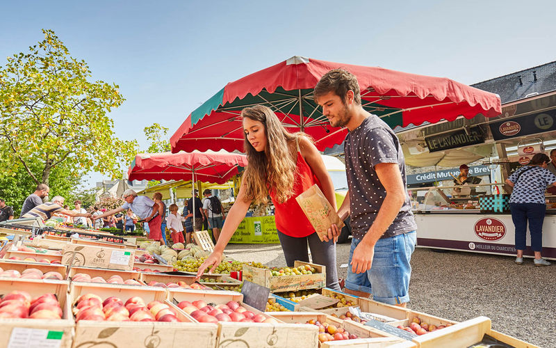 Boulangerie, boucherie, fromage de chèvre, produits laitiers de brebis, miel, viande de boeuf, canard...selon la disponibilité des produits.