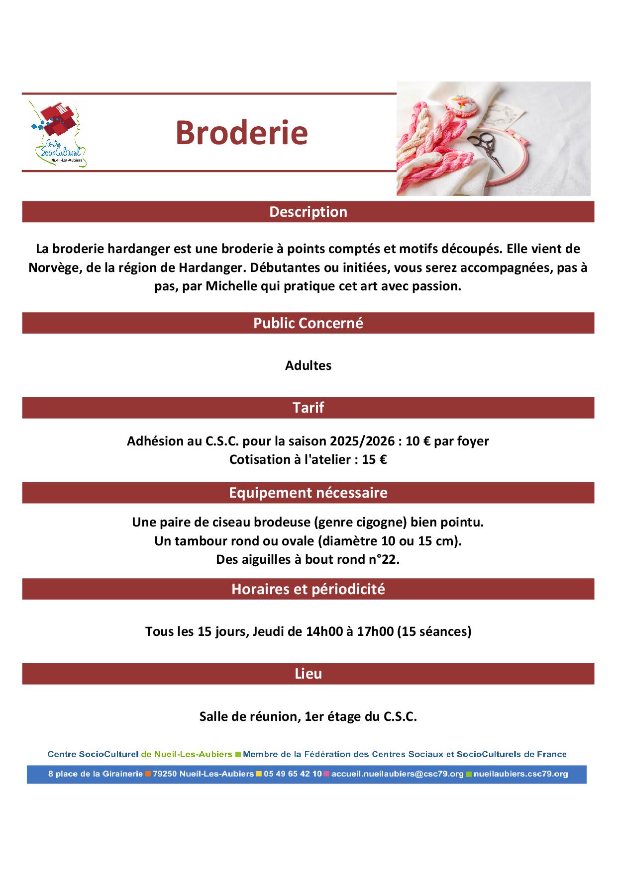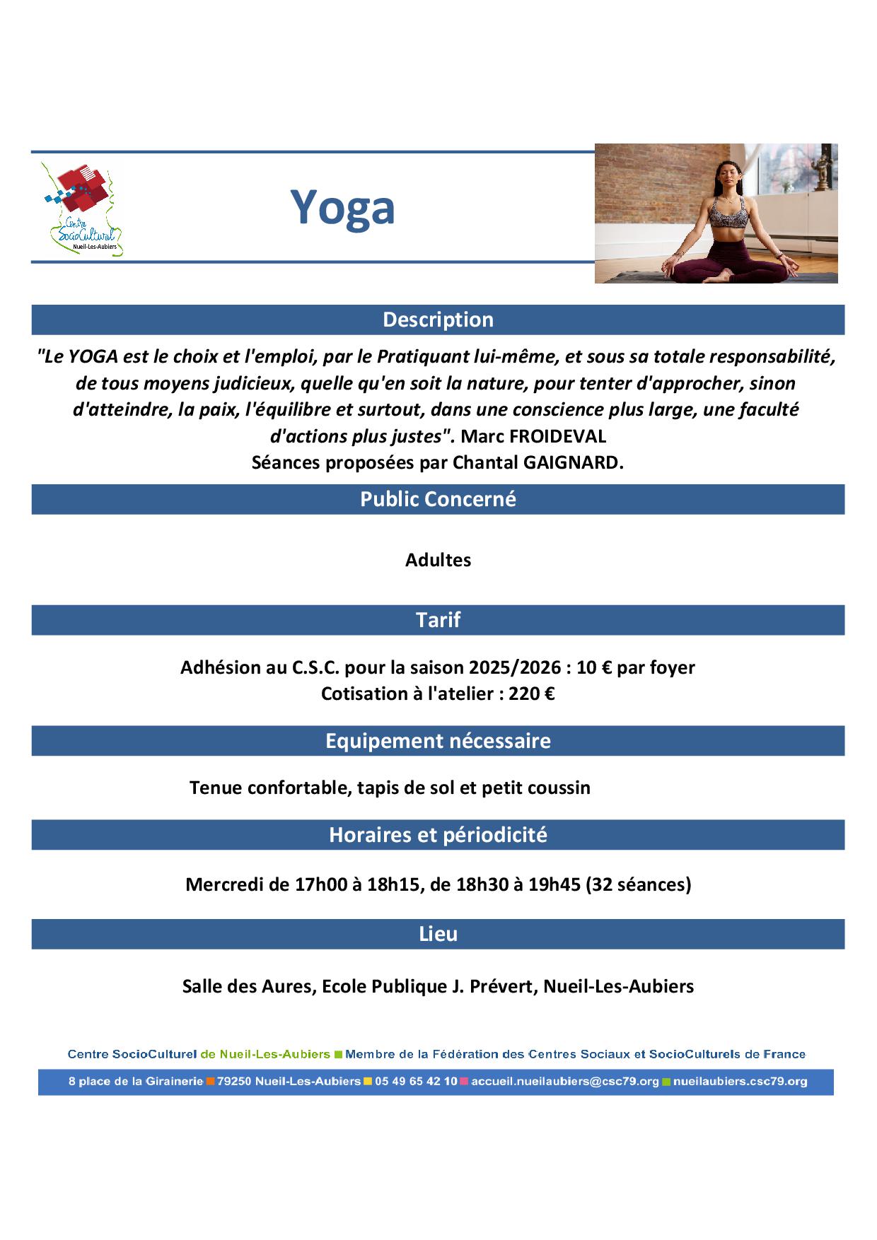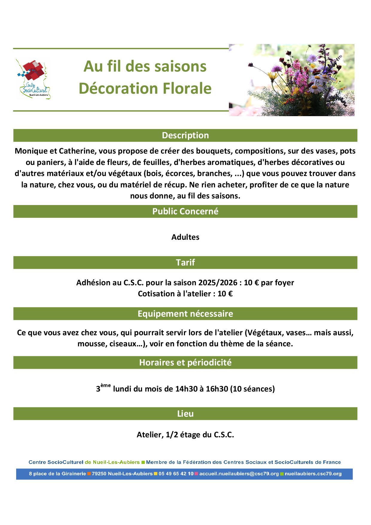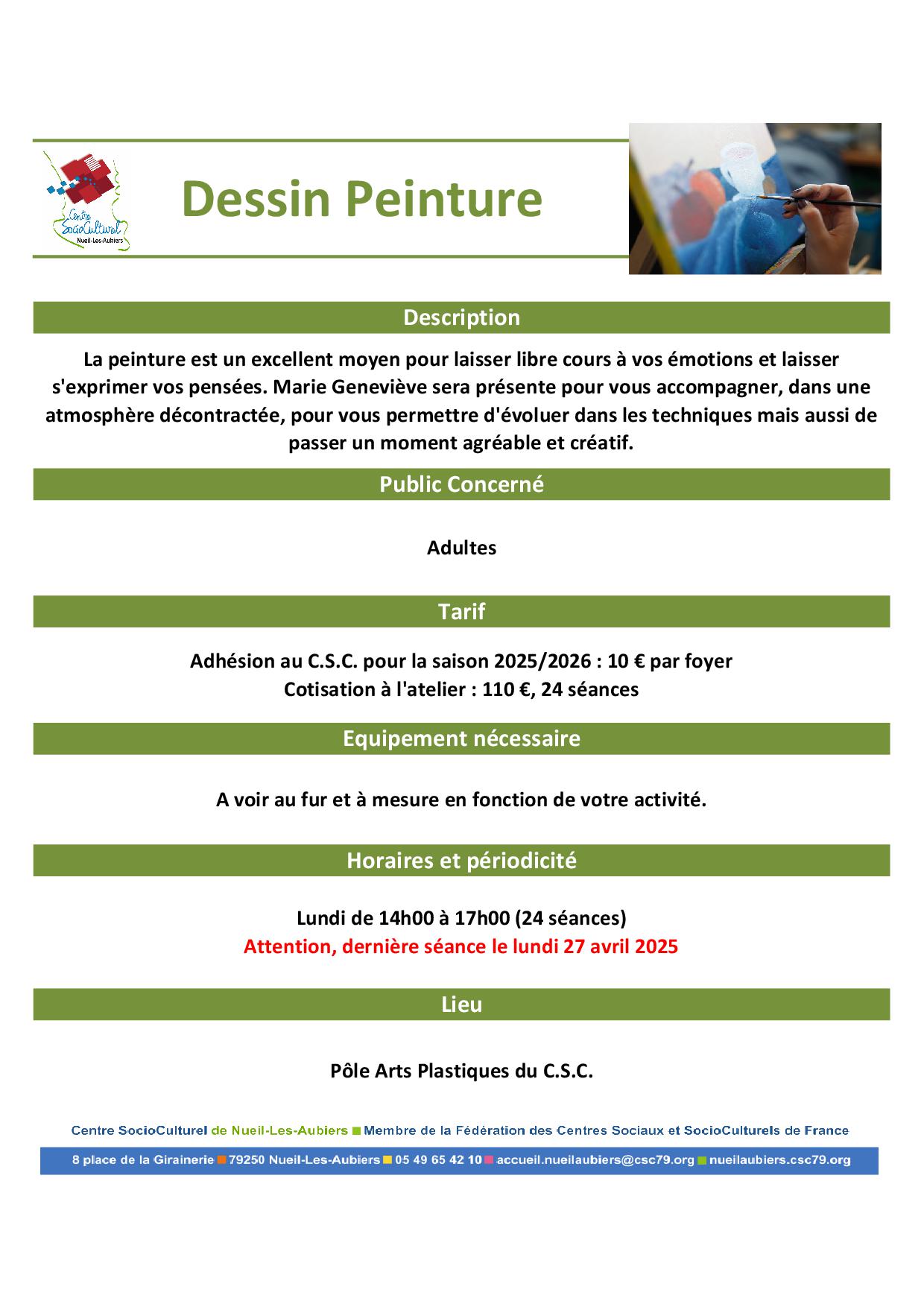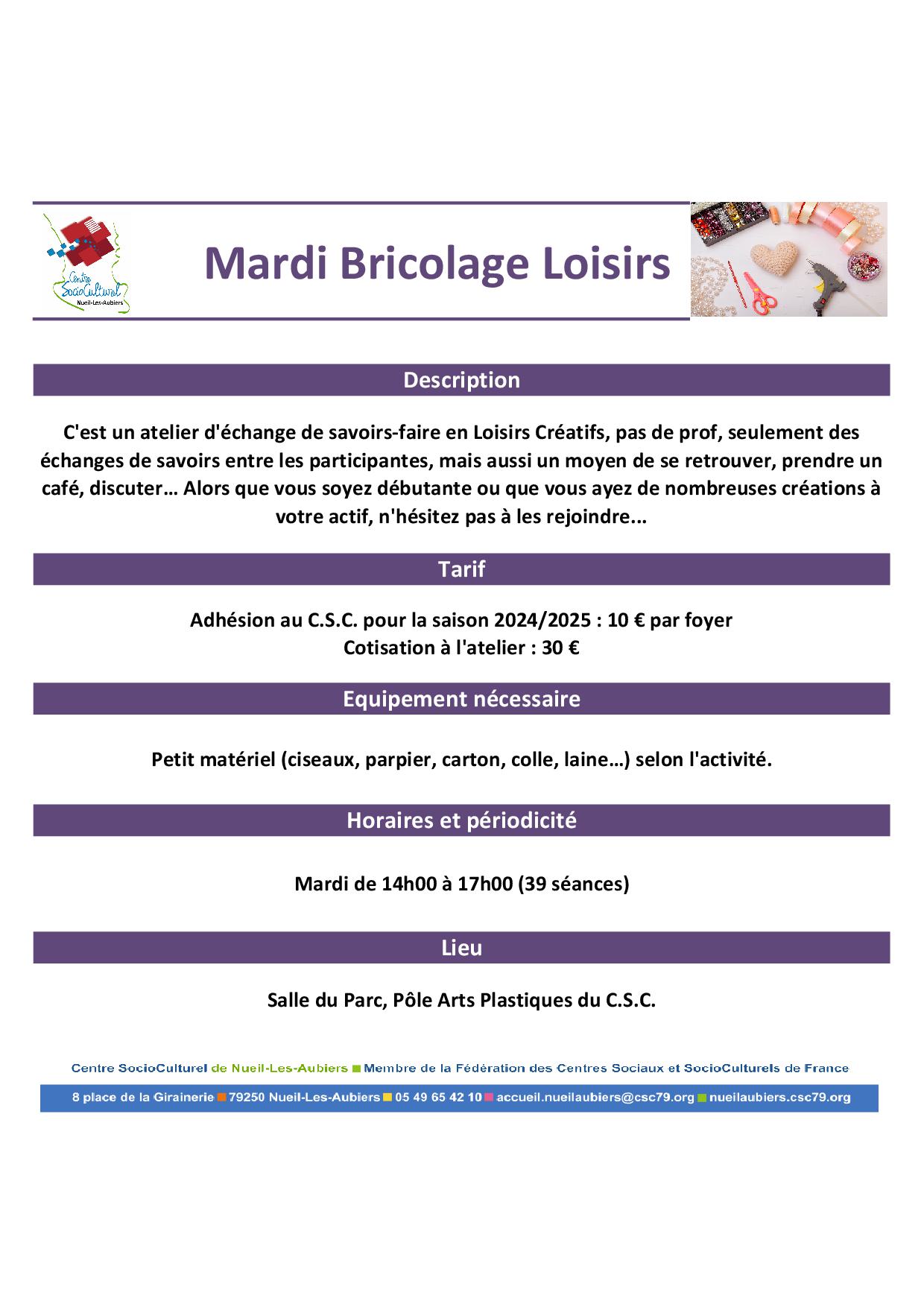 Inscription aurpès de l'accueil du C.S.C. au 05.49.65.42.10 ou accueil@cscnla.fr