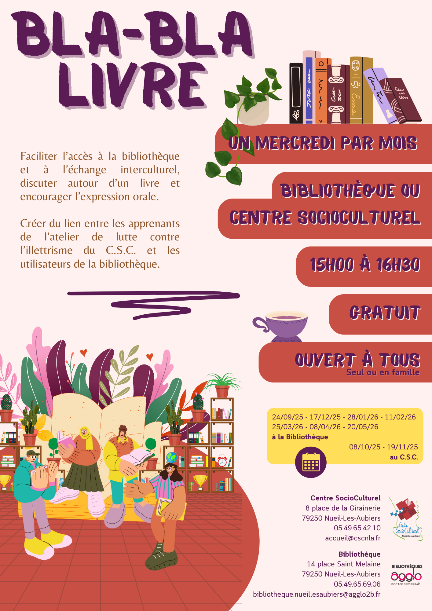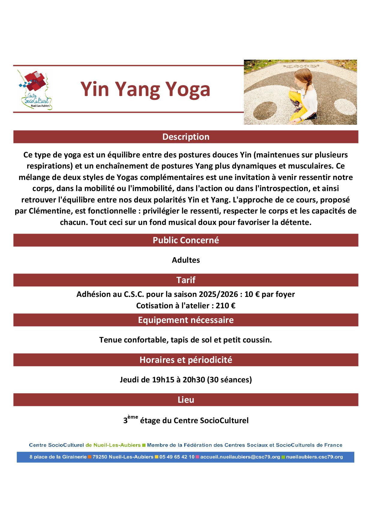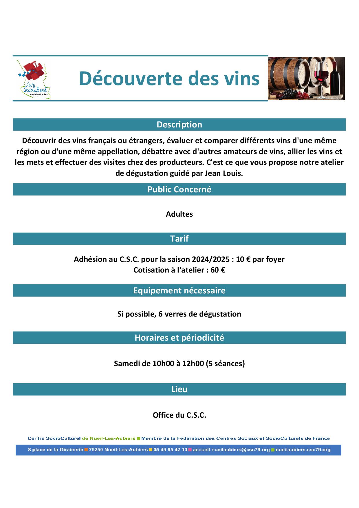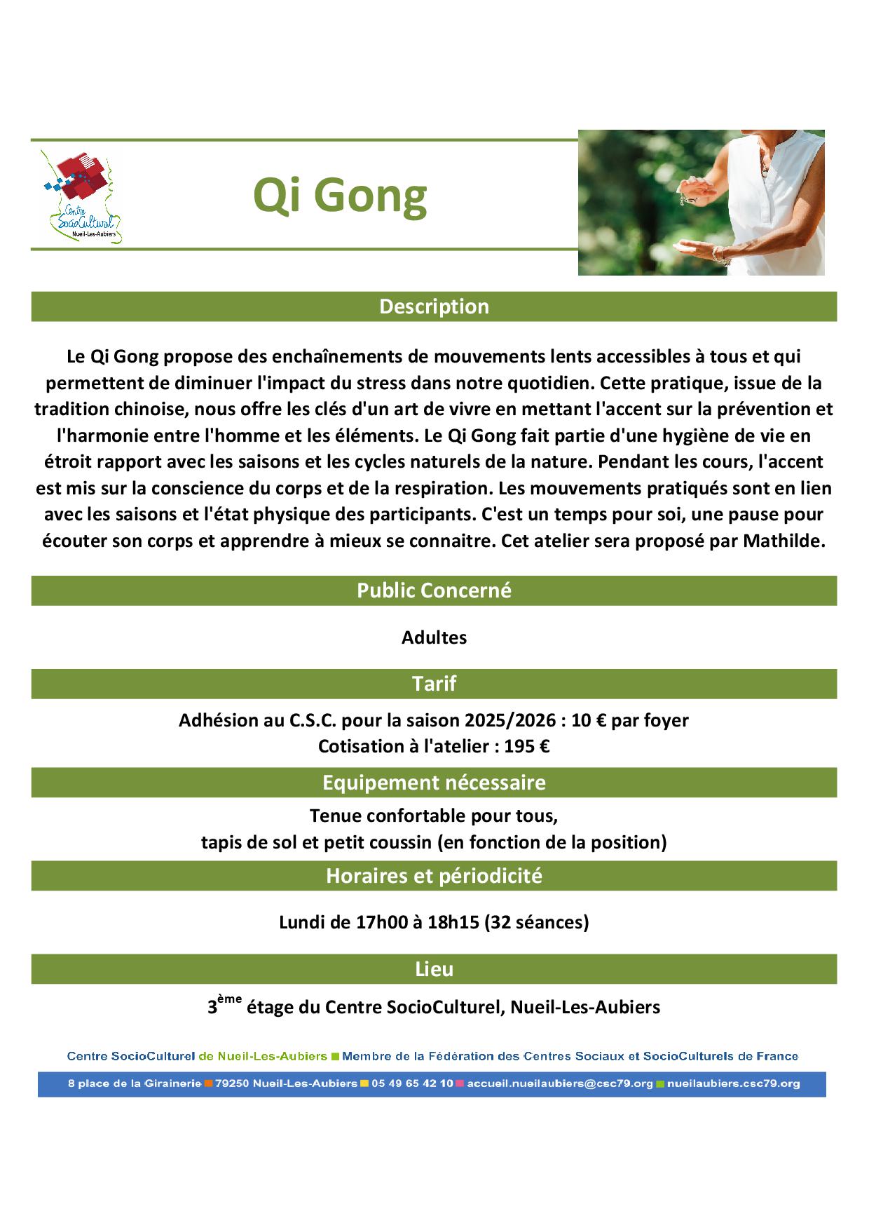 Inscription aurpès de l'accueil du C.S.C. au 05.49.65.42.10 ou accueil@cscnla.fr