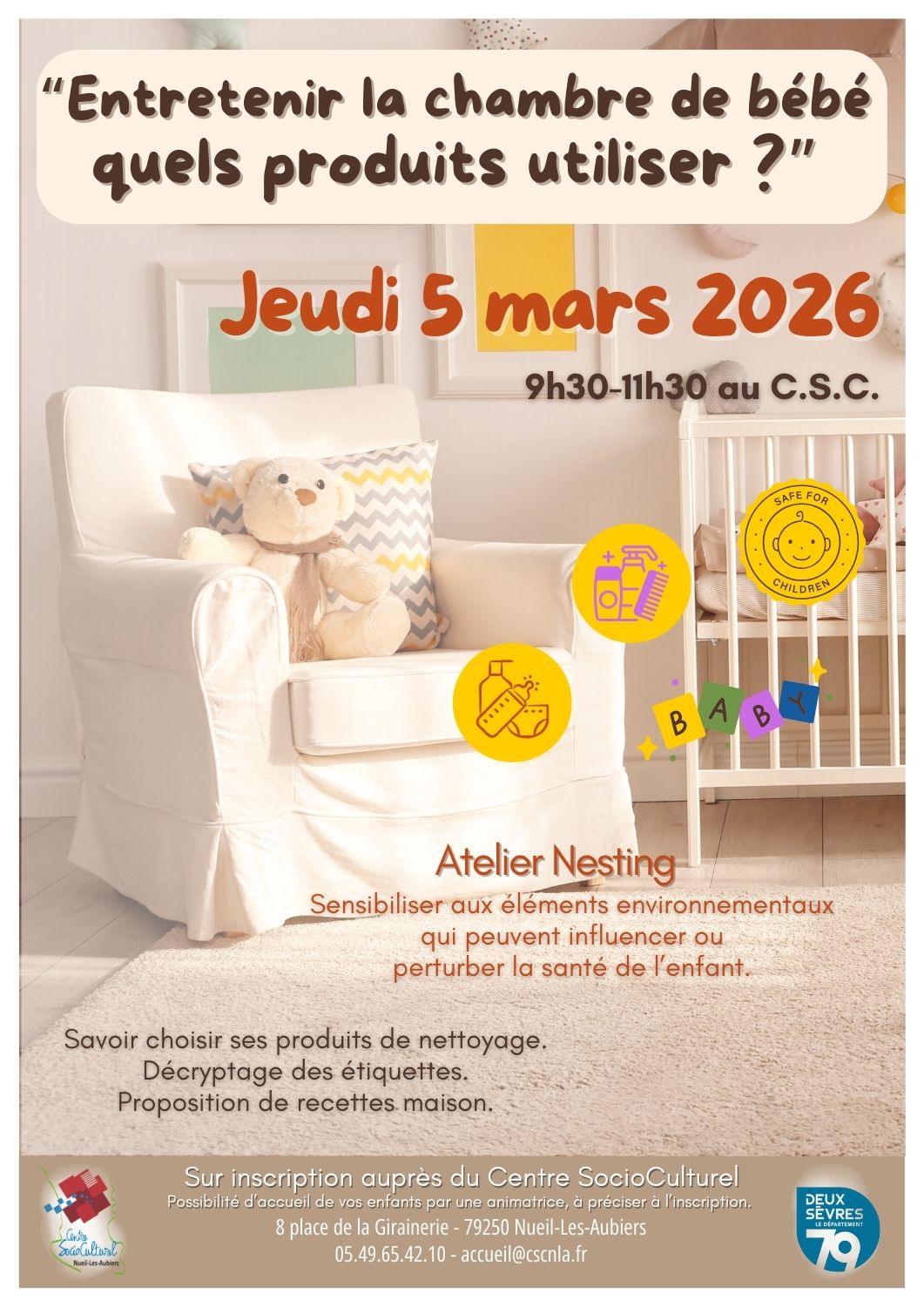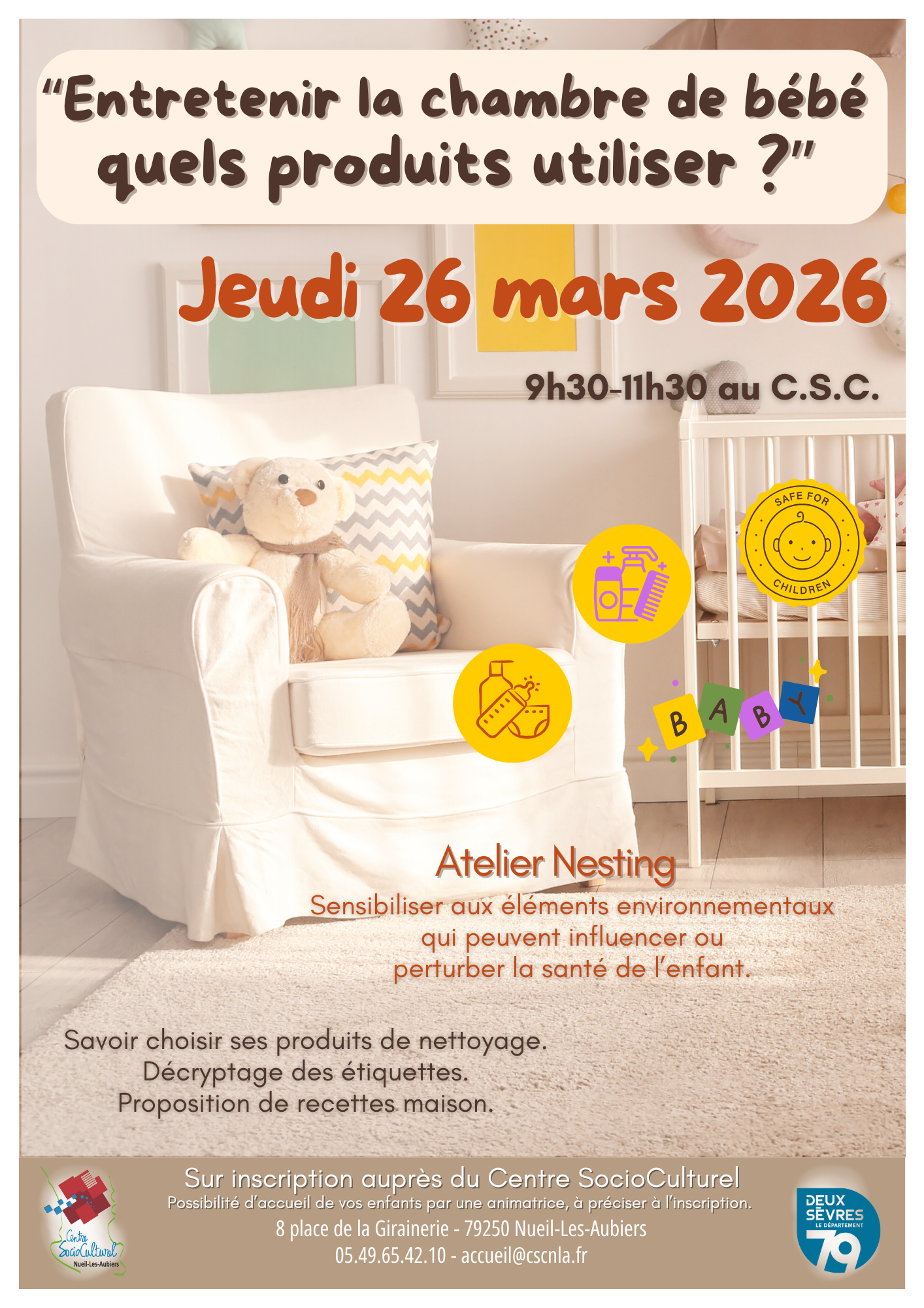Renseignements auprès de l'accueil du C.S.C. au 05.49.65.42.10 ou accueil@cscnla.fr