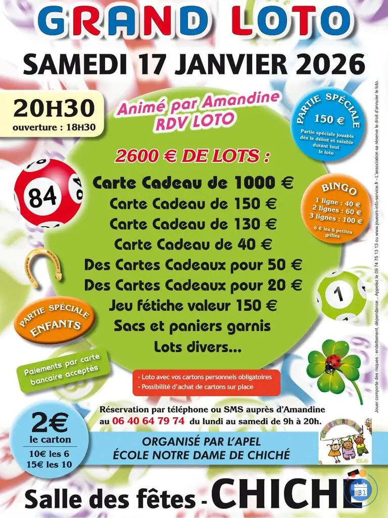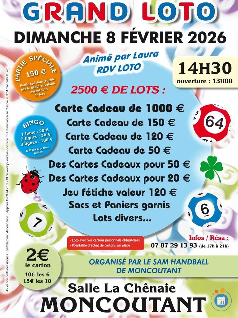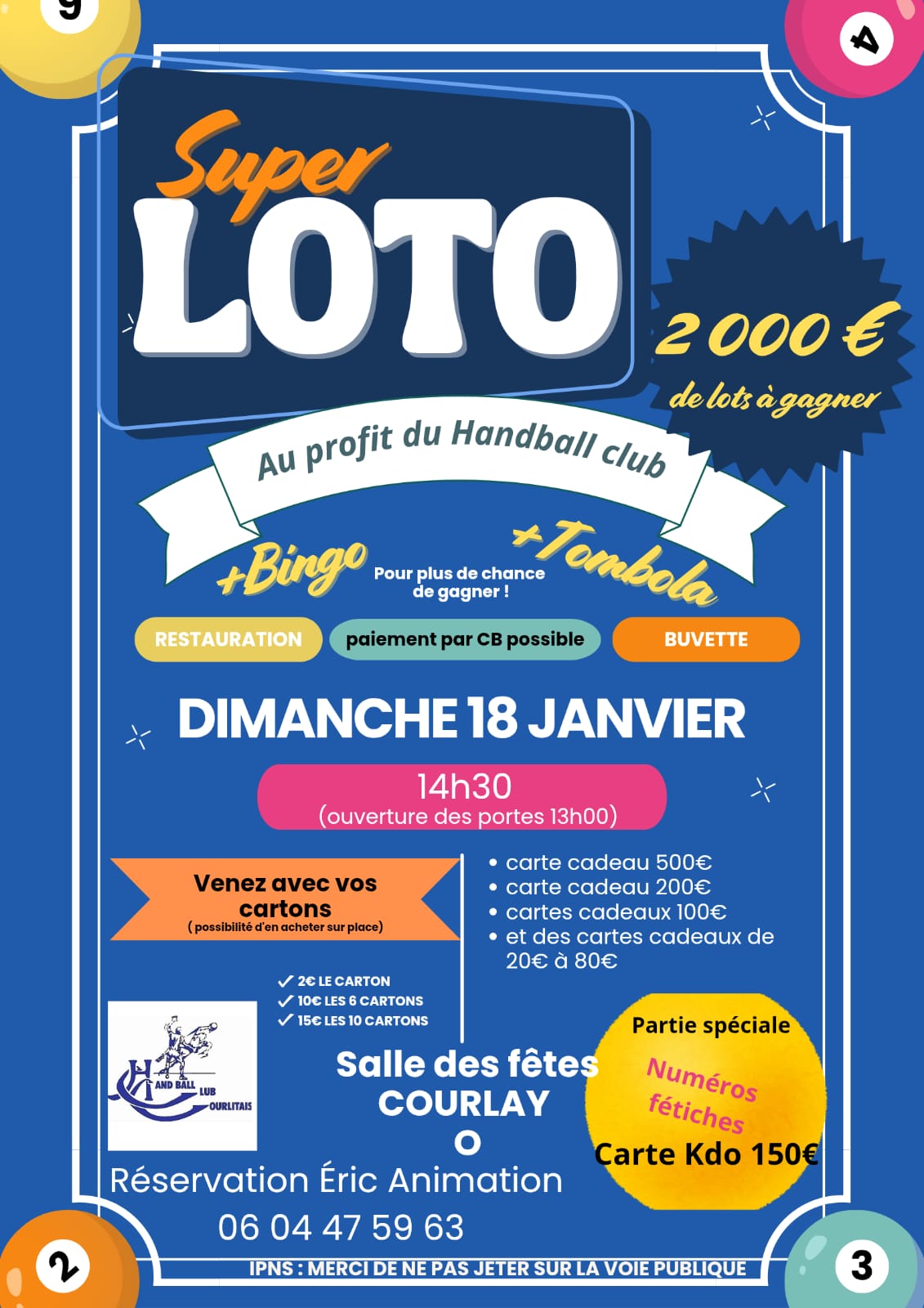 Début du loto à 14h30-Ouverture des portes à 13h00