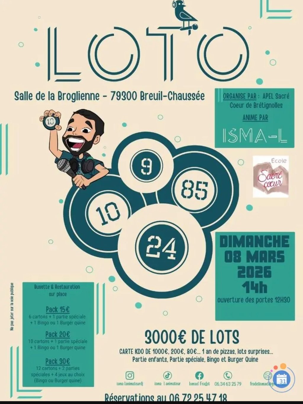 Infos et réservations : 0787291393