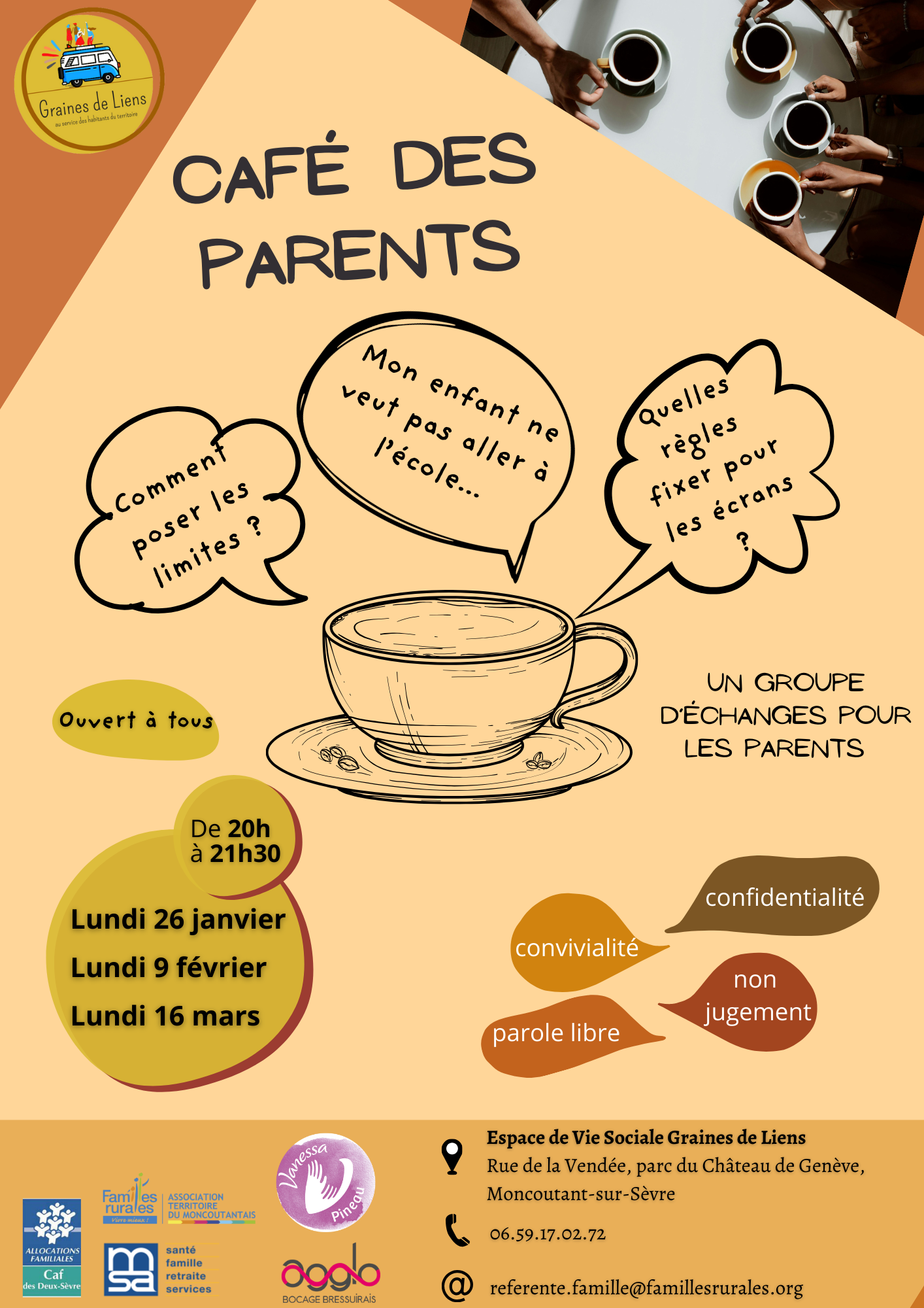 Inscription aurpès de l'accueil du C.S.C. au 05.49.65.42.10 ou accueil@cscnla.fr